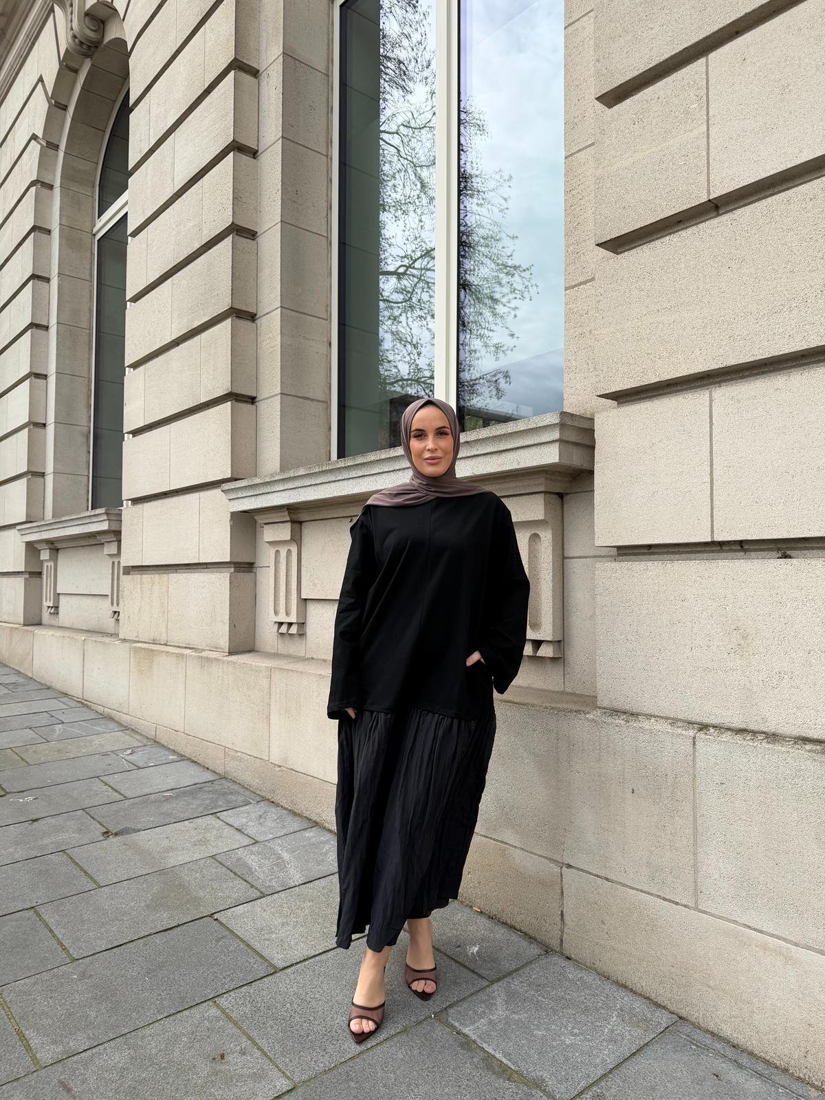 Two-fabric long dress