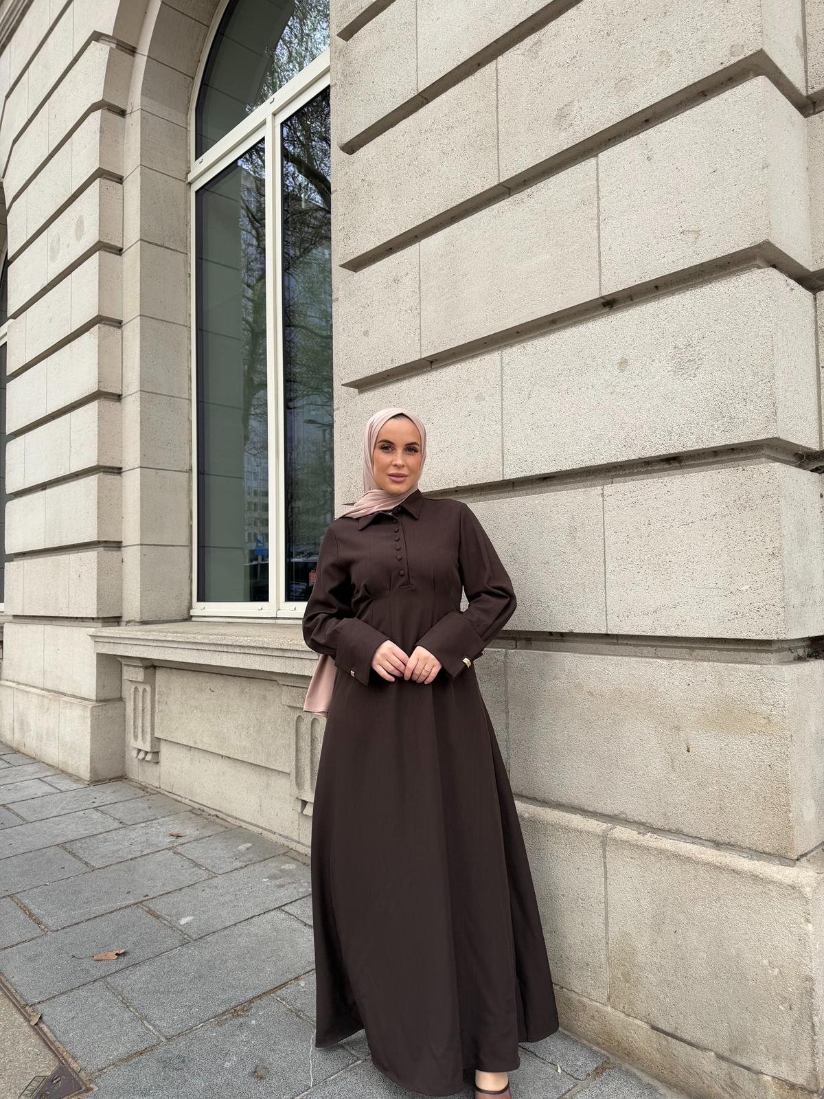 Coffee long shirt dress